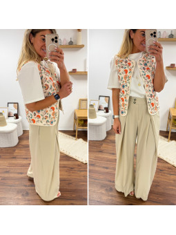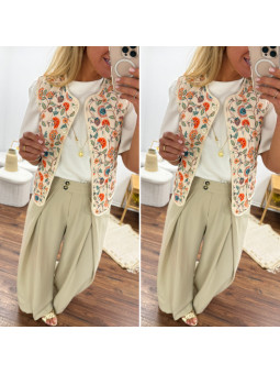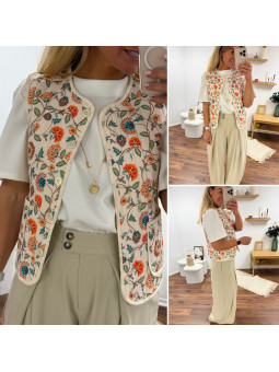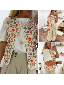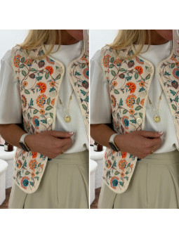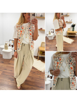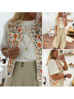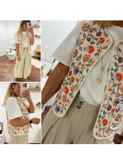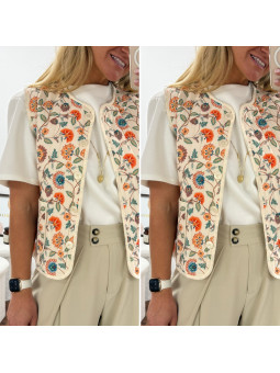 Veste en gaze de coton avec petites fleurs oranges foncées Le...