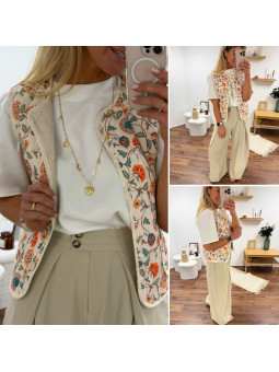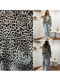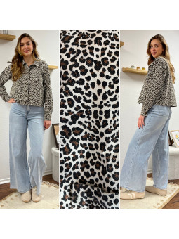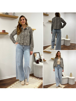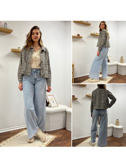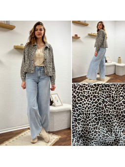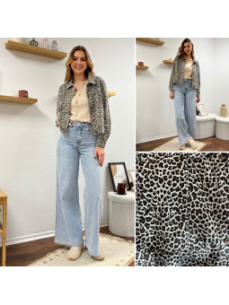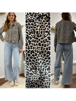 Veste façon jean écrue avec imprimés léopard chocolats Le SM...