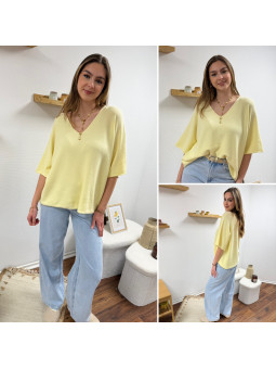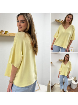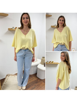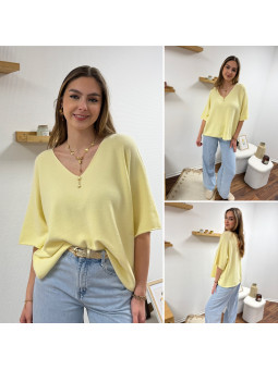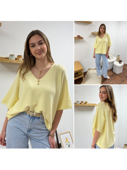 Pull col V oversize jaune pâle manches coude Cet article en TU...
