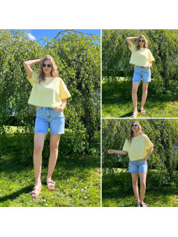Tee-shirt jaune beurre court légèrement oversize Cet article...