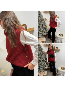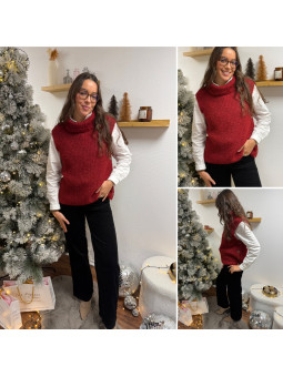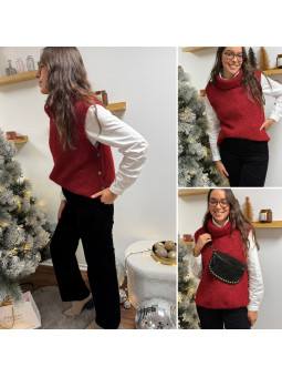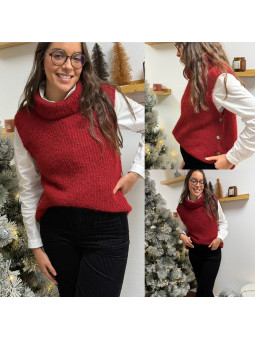 Pull col roulé sans manches rouge avec boutons sur le côté Cet...