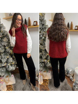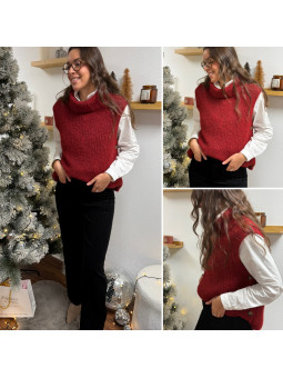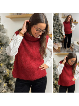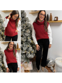 Pull col roulé sans manches chocolat avec boutons sur le côté...