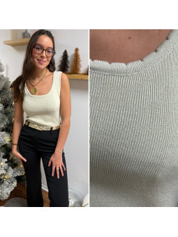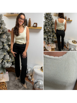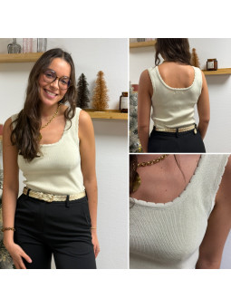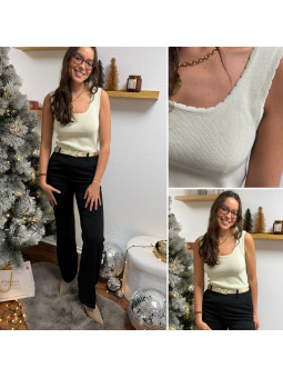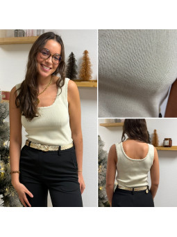 Top col V devant et dans le dos chocolat à sequins et perles...
