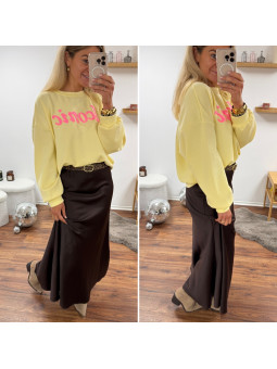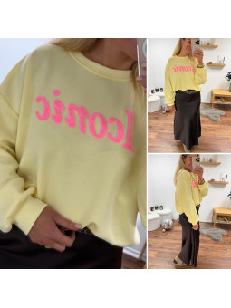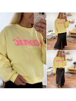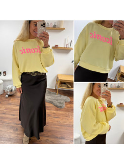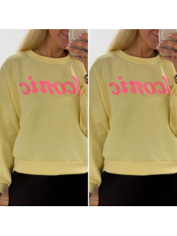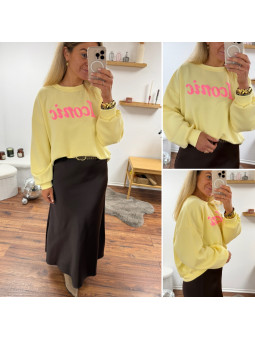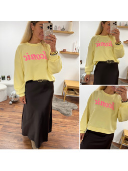 Sweat jaune pastel avec écriture iconic rose fluo en relief...