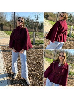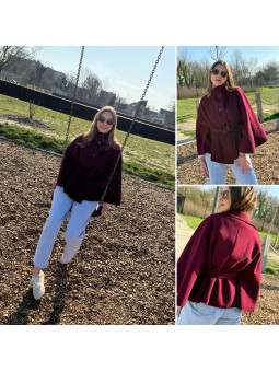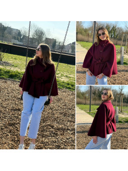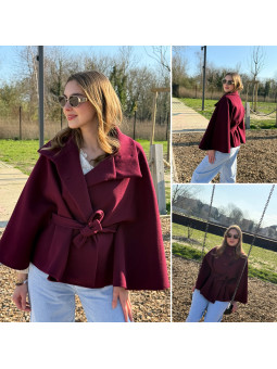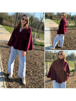 Veste cape cassis avec col montant et ceinture à la taille Cet...