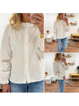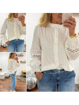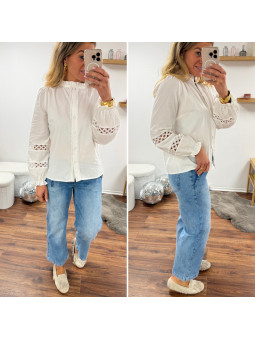 Chemise blanche avec broderies ajourées sur les manches Le SM...
