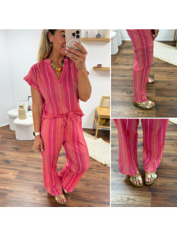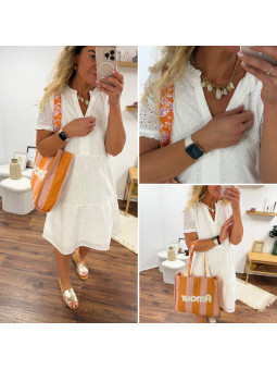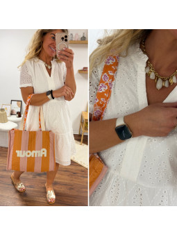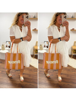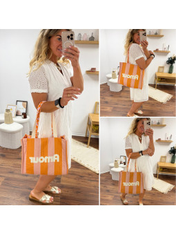 Cabas rayé orange et rose avec logo "amour" et anses fleuries...