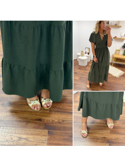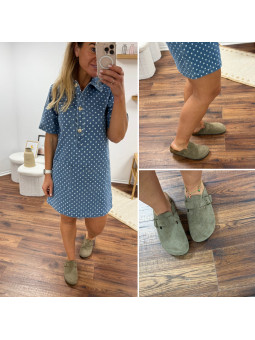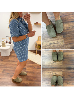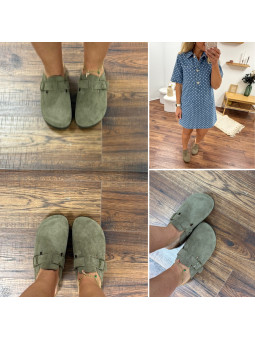 Sabot en daim véritable kaki (croûte de cuir) Disponible du 36...