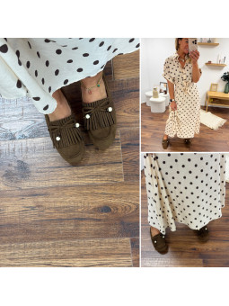 Moccassins en suédine couleur chocolat à franges Disponible du...