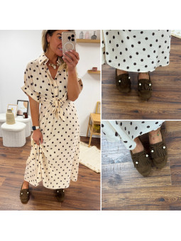 Moccassins beiges à franges en cuir (uniquement dispos en...