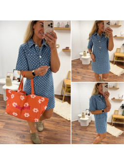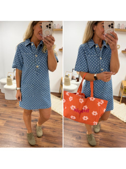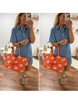 Sac en tissu épais orange avec fleurs et logo "hippie" 100%...