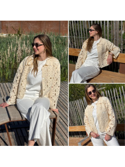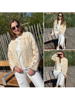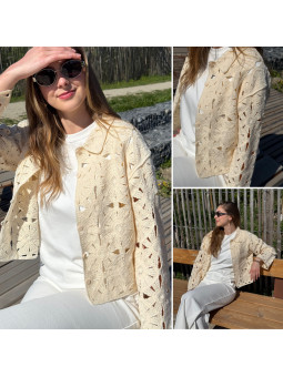 Veste en crochet beige à motifs fleuries ajourés Cet article...