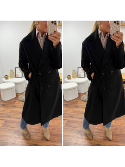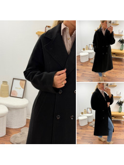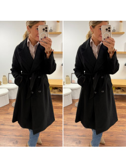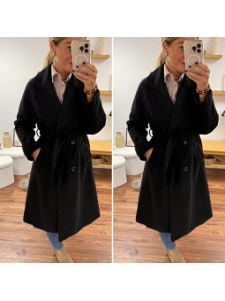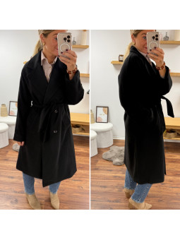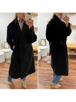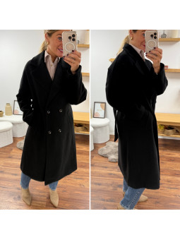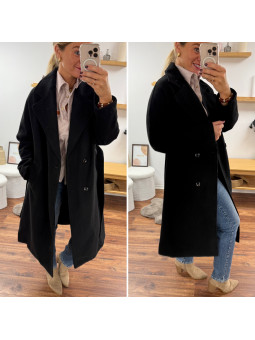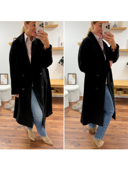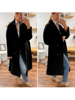 Long manteau noir avec de la laine avec ceinture à la taille...