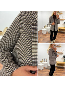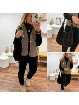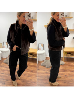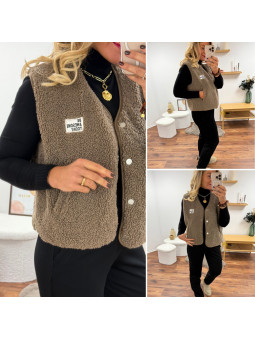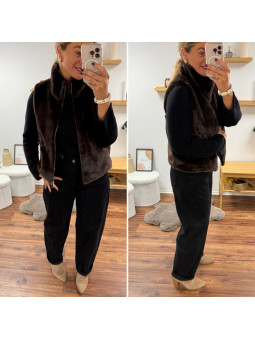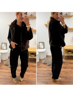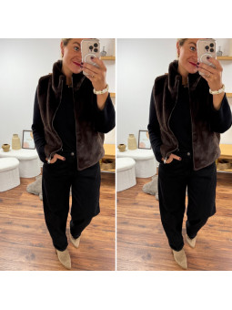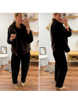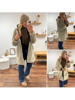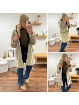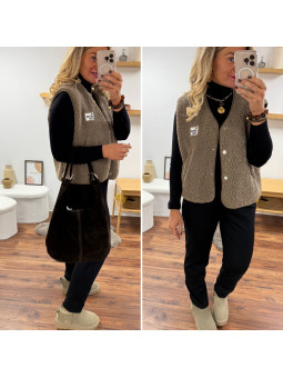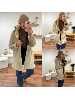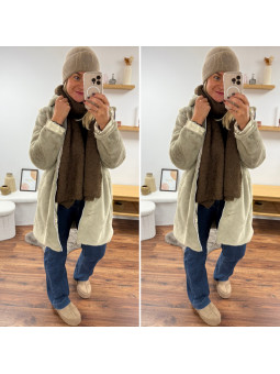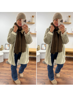 Veste réversible chocolat et sherpa écru avec écusson léopard...