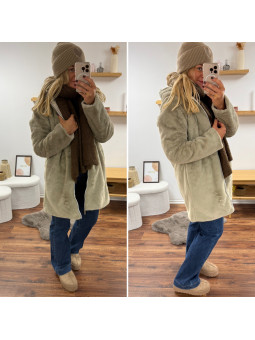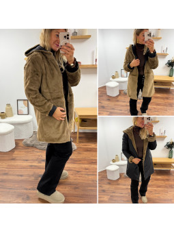 Parka mi longue réversible kaki et fausse fourrure beige Le S...
