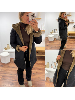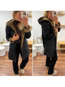 Parka mi longue réversible noire et fausse fourrure camel Le S...