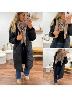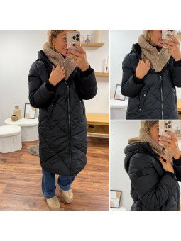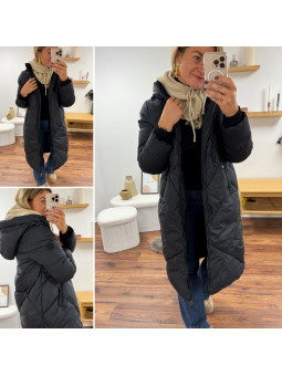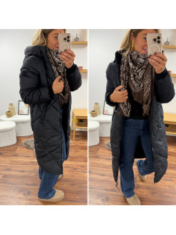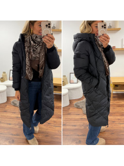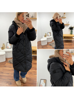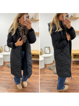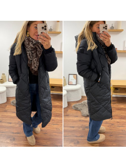 Doudoune longue matelassée noire avec capuche Disponible du 36...