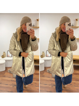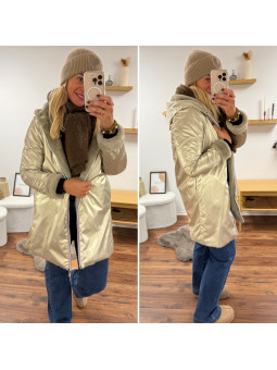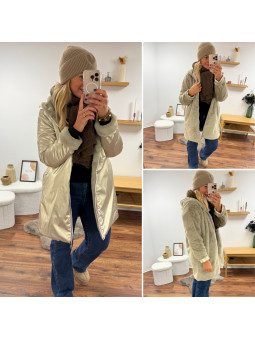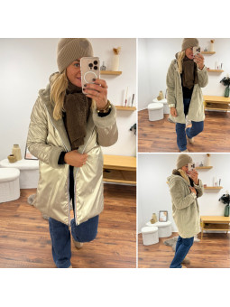Parka mi longue réversible dorée et fausse fourrure beige Le S...