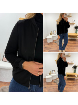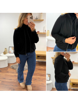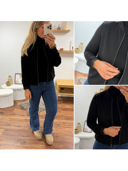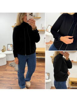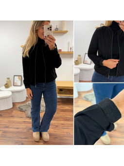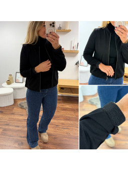 Veste noire avec bandes lurex sur le col et les poignets (du...