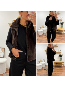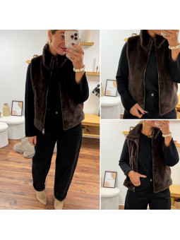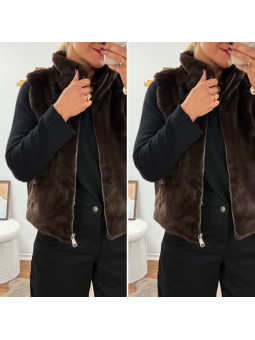 Veste réversible matelassée chocolat et fourrure léopard Le SM...