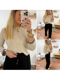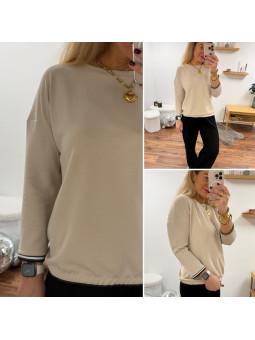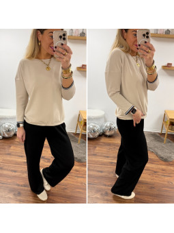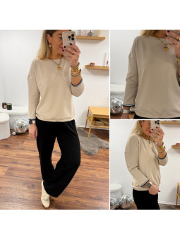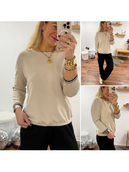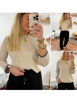Sweat fin tout doux beige manches 3/4 avec fines bandes...