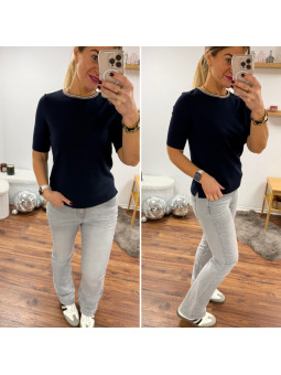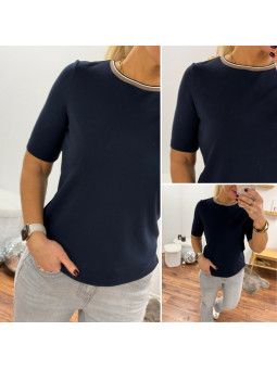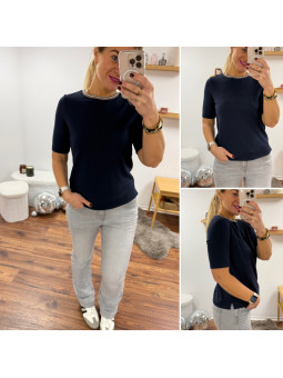 Tee shirt marine manches 3/4 décolleté coeur (du 36 au 46)...