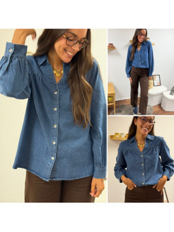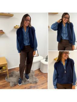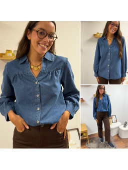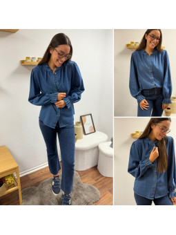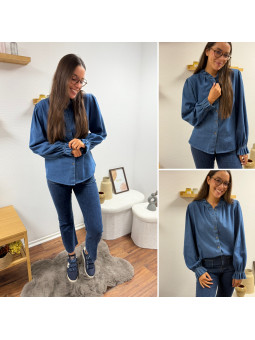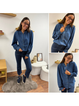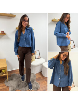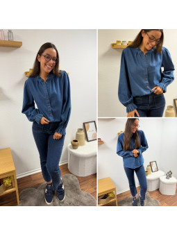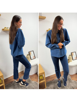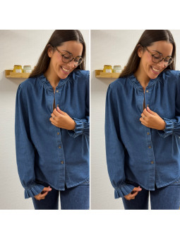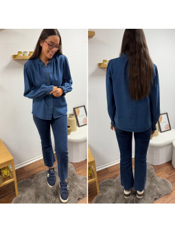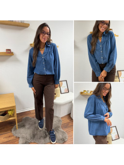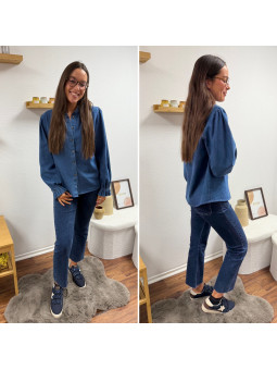 Chemise en col V en jean bleu foncé 100% coton Le SM équivaut...