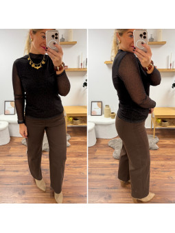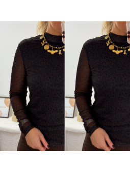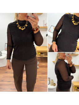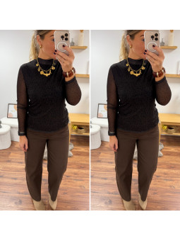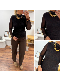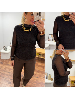 Blouse moulante en résille doublé sur le buste avec col...