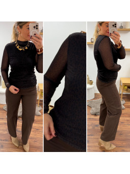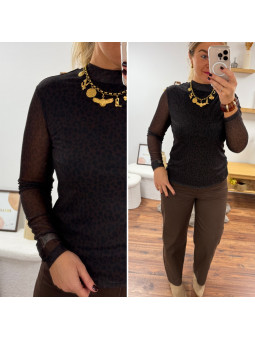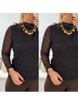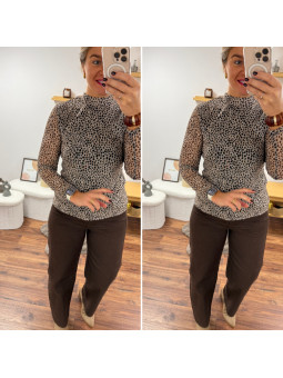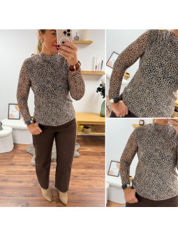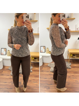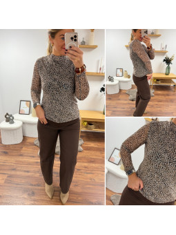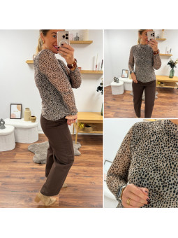 Chemise souple en petit léopard tacheté chocolat (du 36 au...