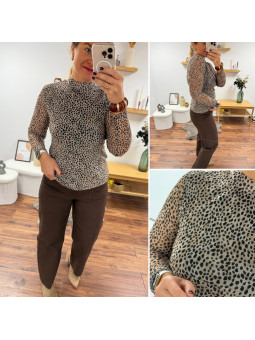 Chemise souple en petit léopard tacheté beige (du 36 au 46)...