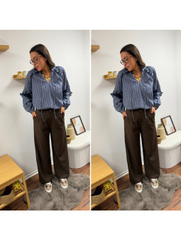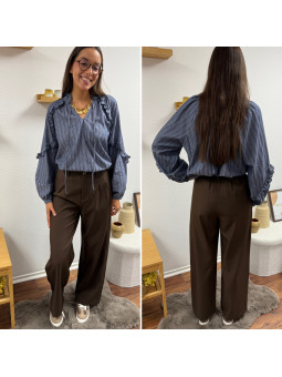 Blouse à volant écrue avec liseré chocolat Le S équivaut au 36...