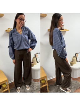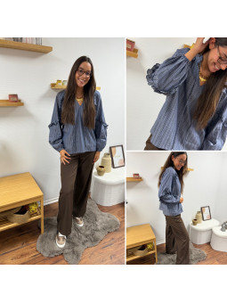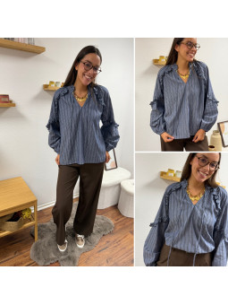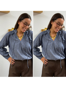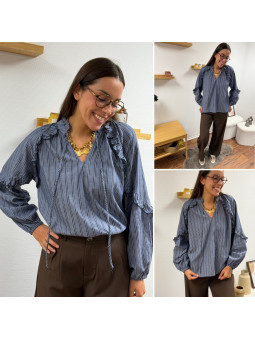 Blouse rayée bleu jean avec volants Le SM équivaut au 36-38,...