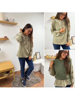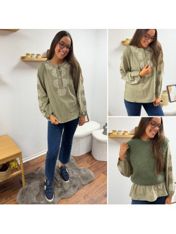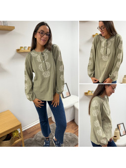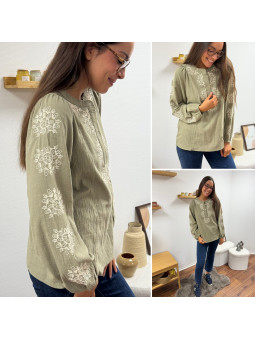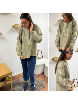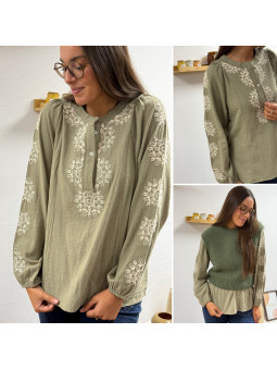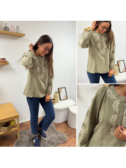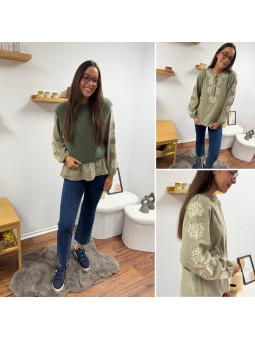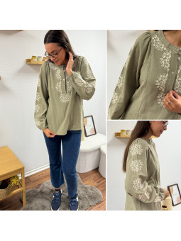 Blouse kaki avec broderies blanches Le SM équivaut au 36-38,...