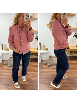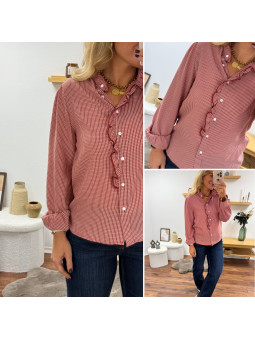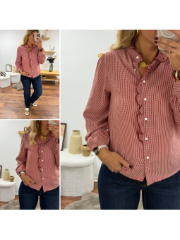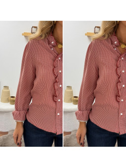 Blouse petits carreaux rouges avec volants Le SM équivaut au...