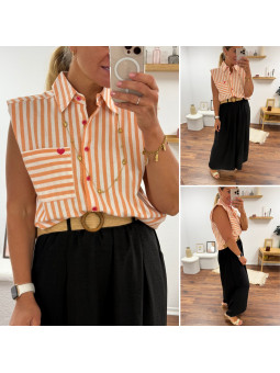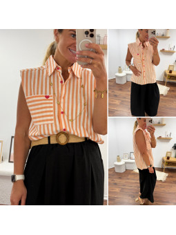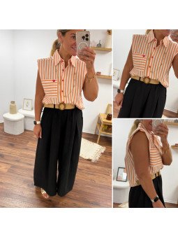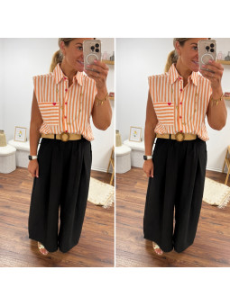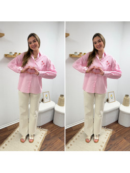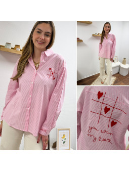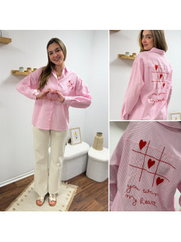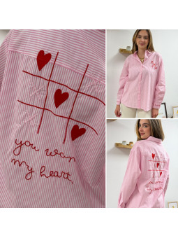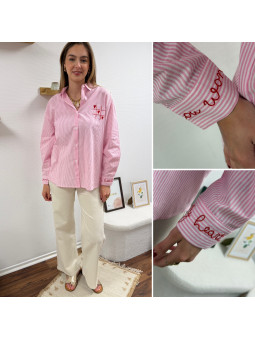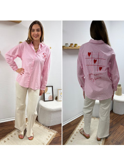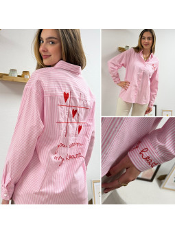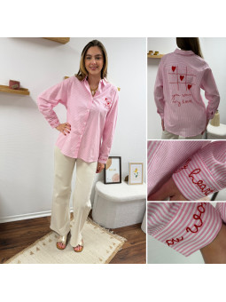 Chemise rose à rayures et cœurs brodés avec inscriptions et...