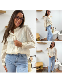 Blouse écrue à fleurs brodées Le SM équivaut au 36-38, le ML...