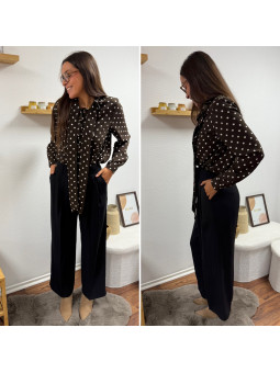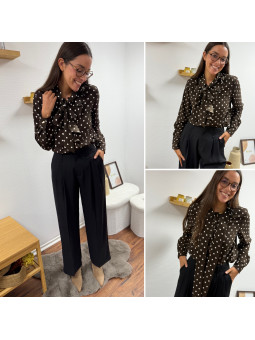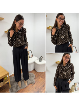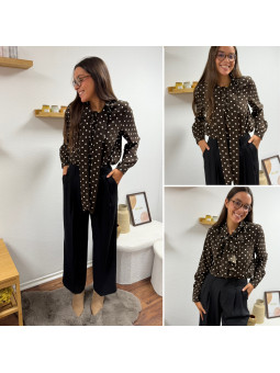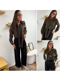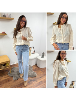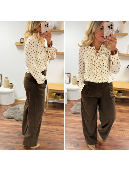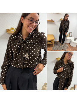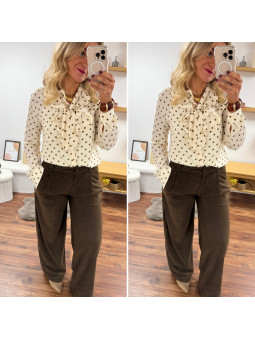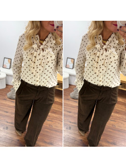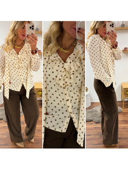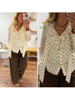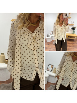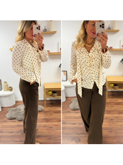 Blouse en voile écrue avec noeud à pois chocolat Le SM...