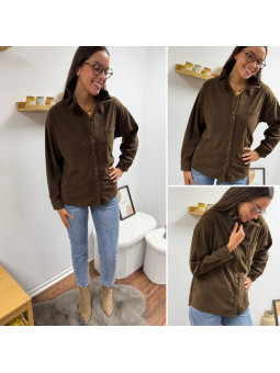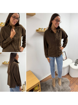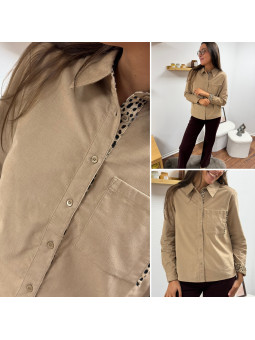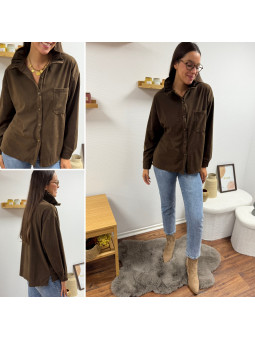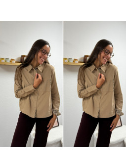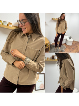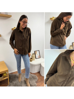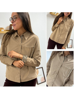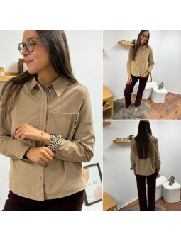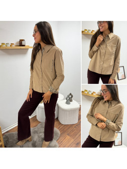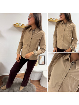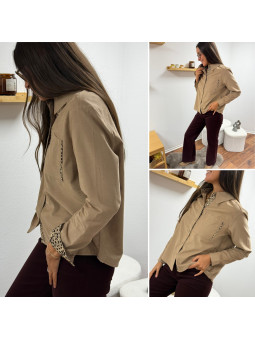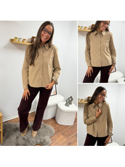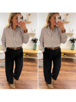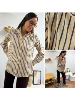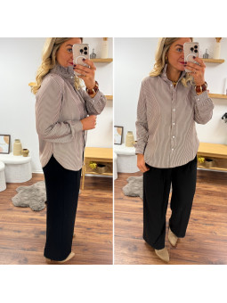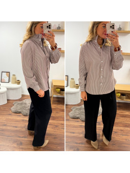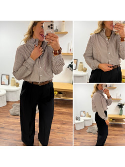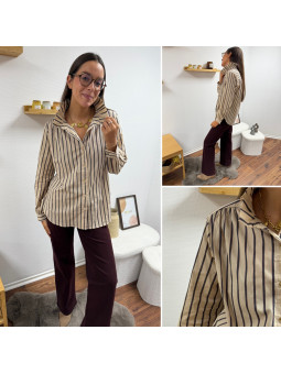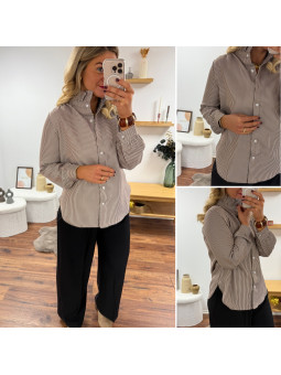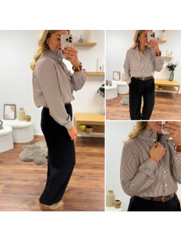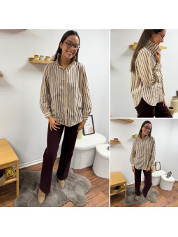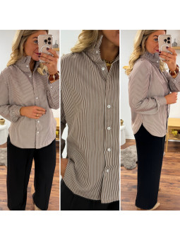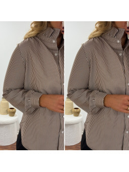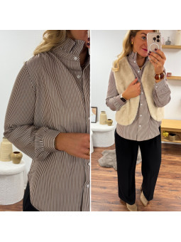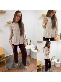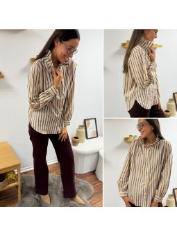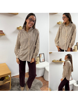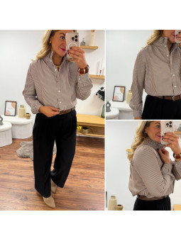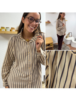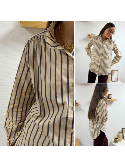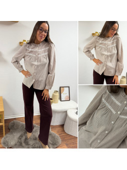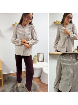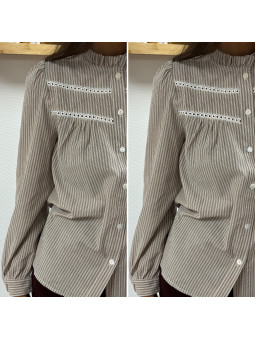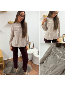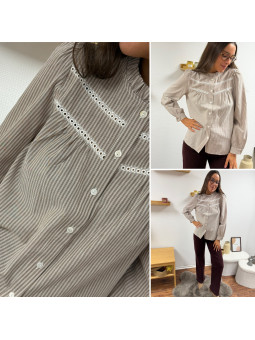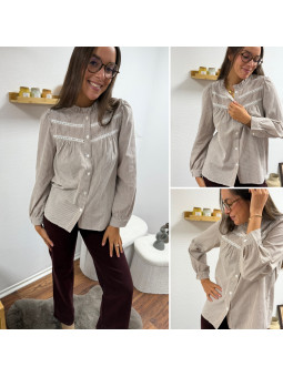 Blouse taupe rayée avec 2 lignes ajourées Le SM équivaut au...
