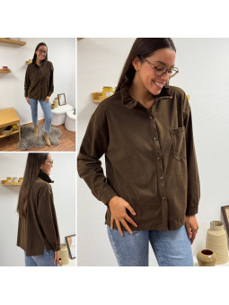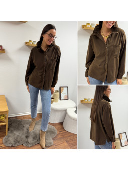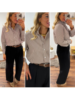Blouse couleur chocolat à fines rayures avec col volant Le SM...