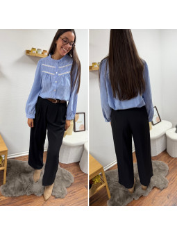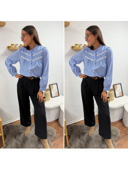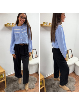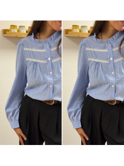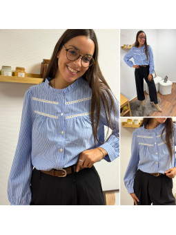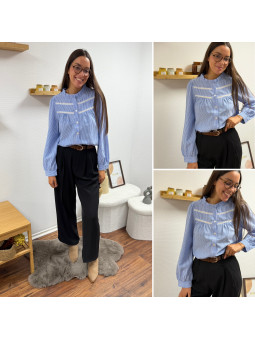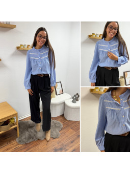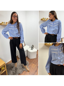 Blouse bleu ciel rayée avec 2 lignes ajourées Le SM équivaut...