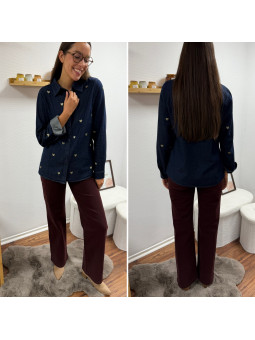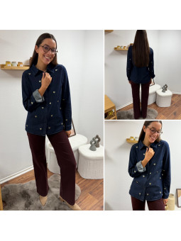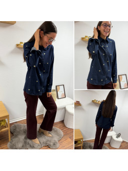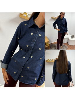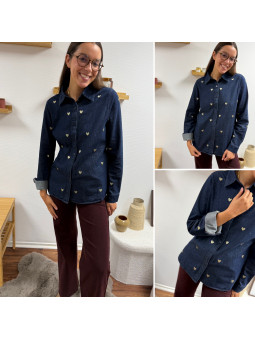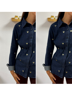 Chemise en jean bleu brut avec petits coeur dorés Le SM...