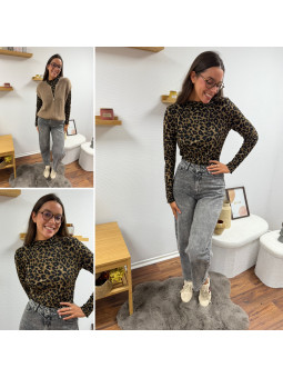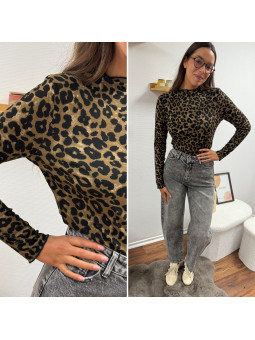 Tee shirt moulant manches longues léopard Le S équivaut au 36...