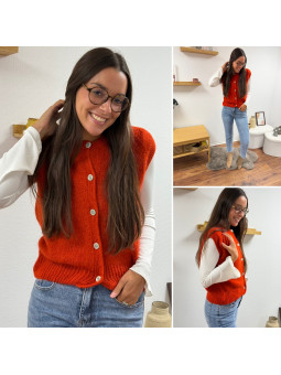 Gilet sans manches orange terracotta en mohair Cet article en...