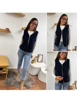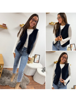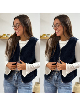 Gilet/veste sans manches à bouclettes marine zippé Le SM...