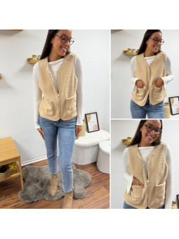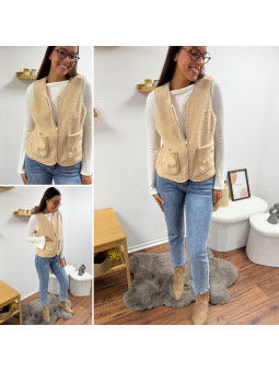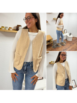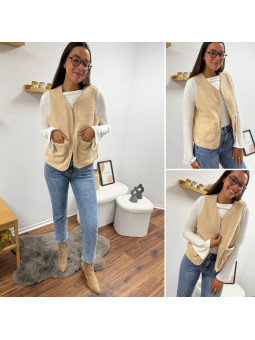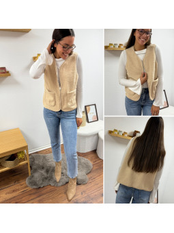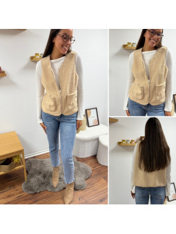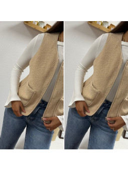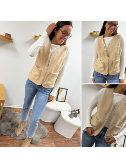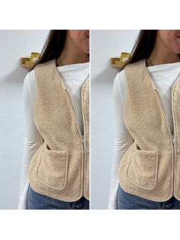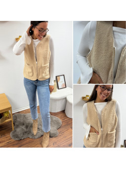 Gilet/veste sans manches à bouclettes beige zippé Le SM...