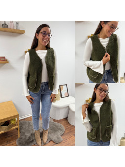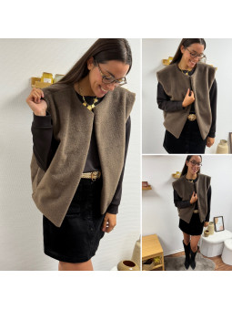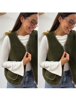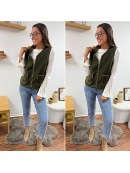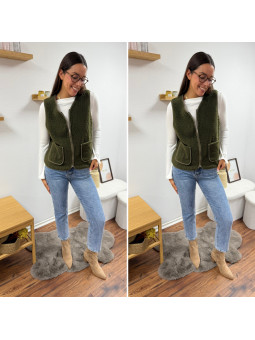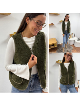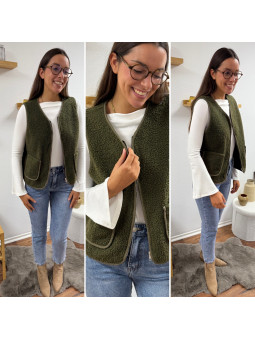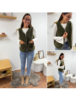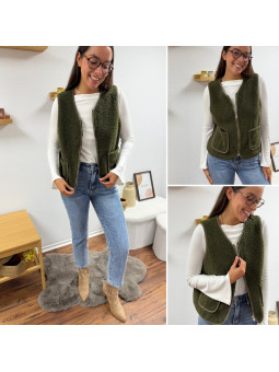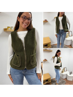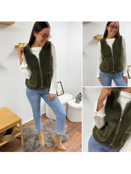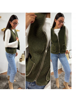 Gilet/veste sans manches à bouclettes kaki zippé Le SM...