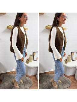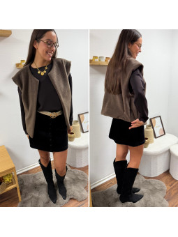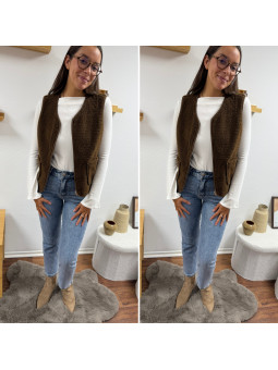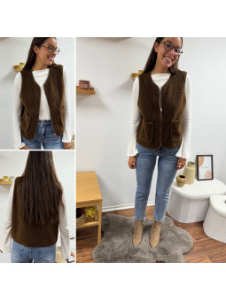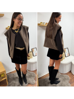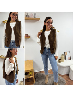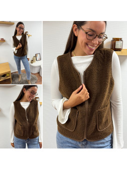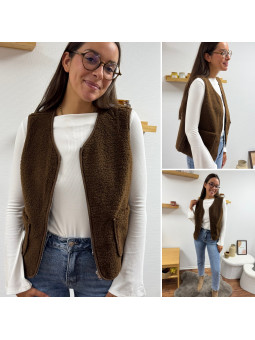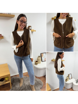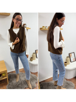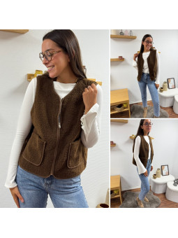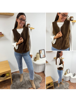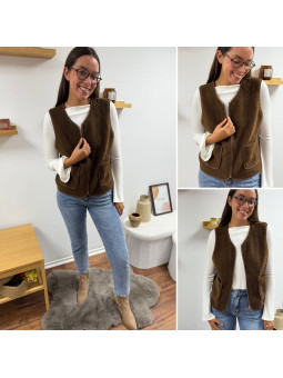 Gilet/veste sans manches à bouclettes chocolat zippé Le SM...