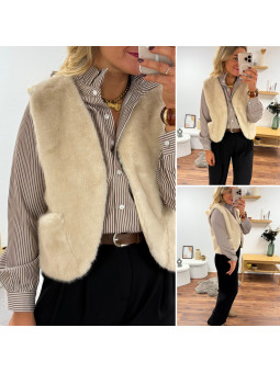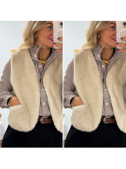 Veste sans manches beige en fausse fourrure Cet article en TU...