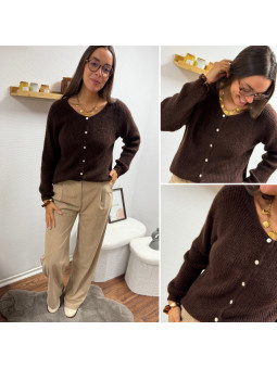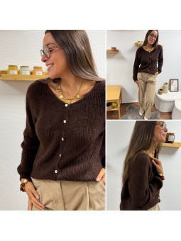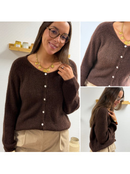 Gilet avec boutons nacrés chocolat Cet article en TU convient...