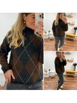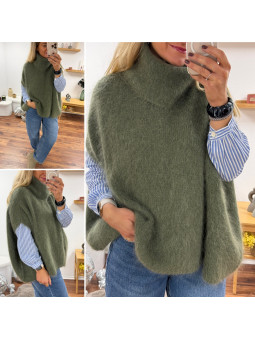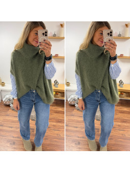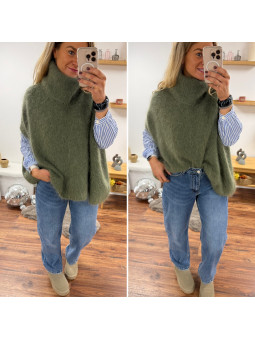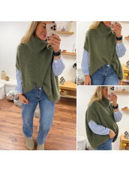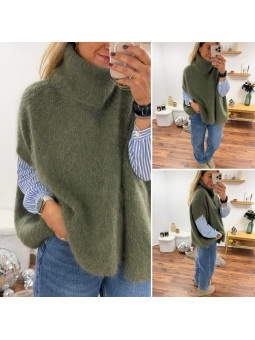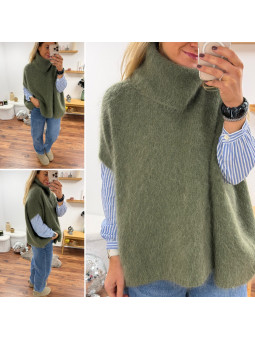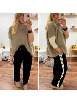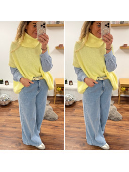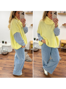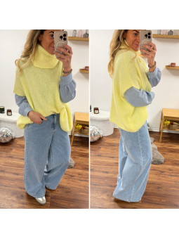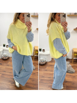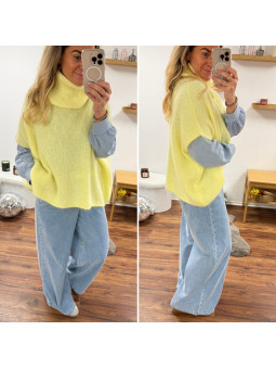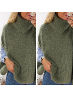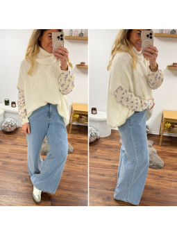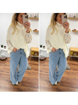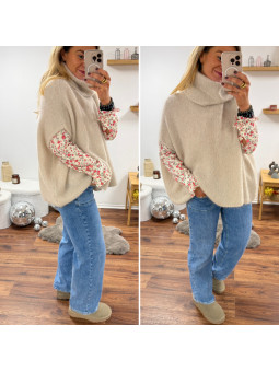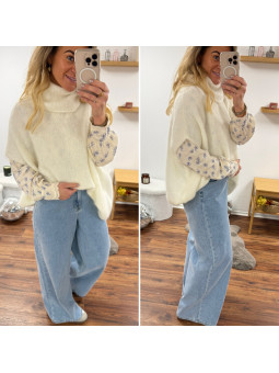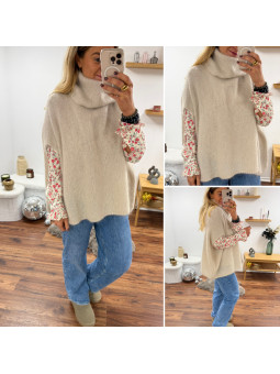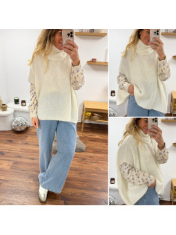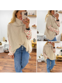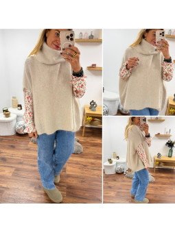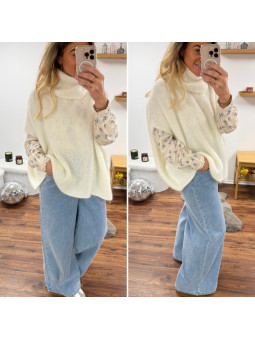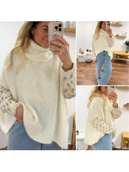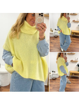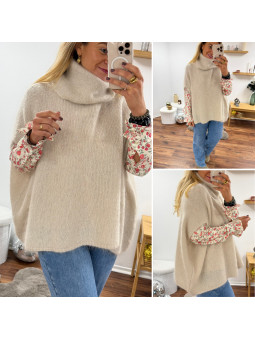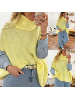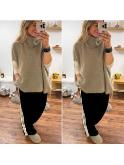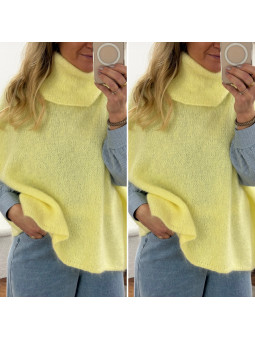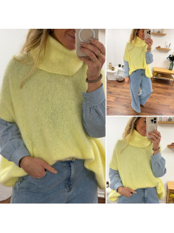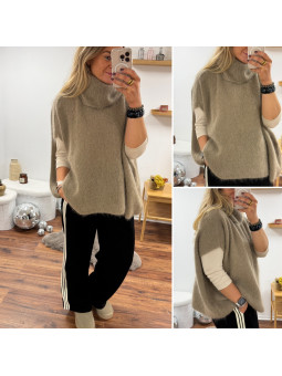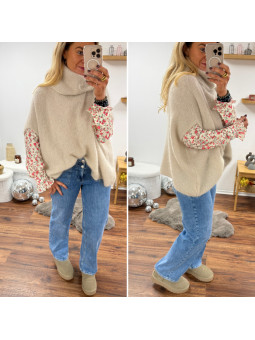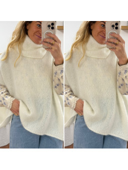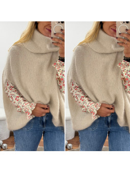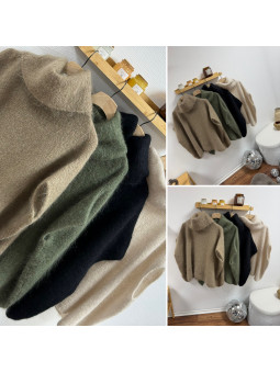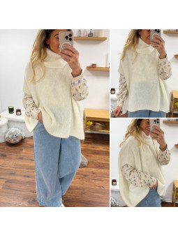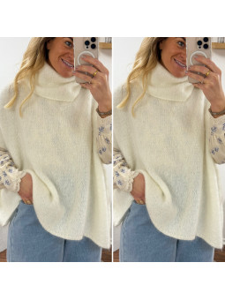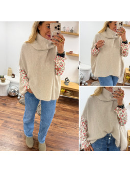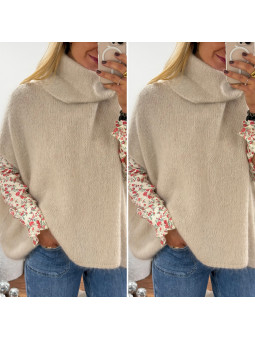 Pull col roulé oversize en mohair beige manches courtes Cet...